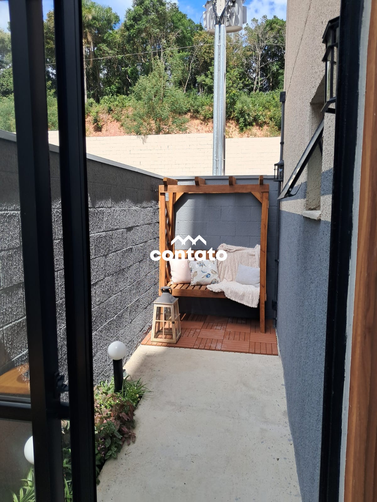 Garden com deck, grama sintética, iluminação e paisagismo.