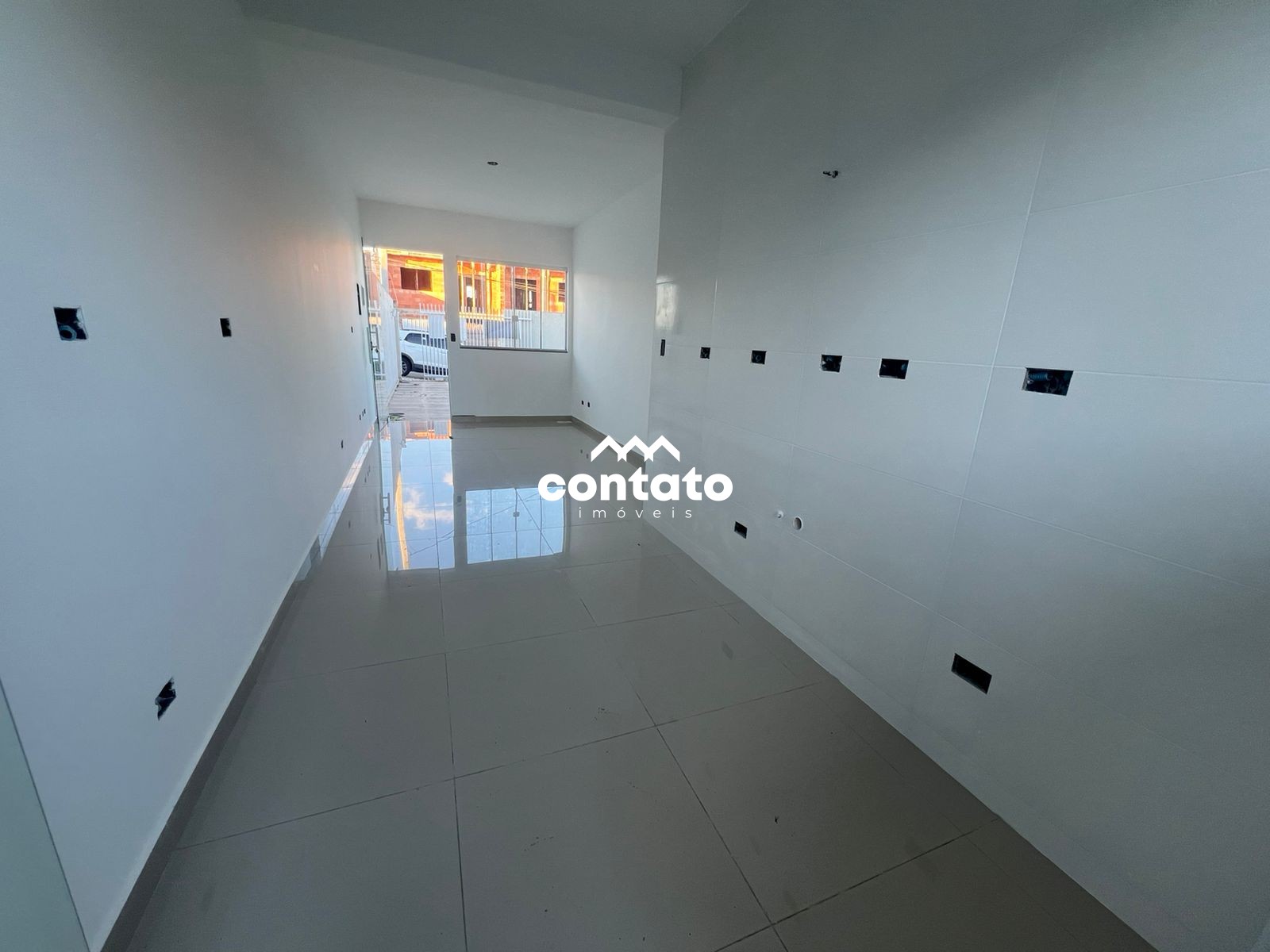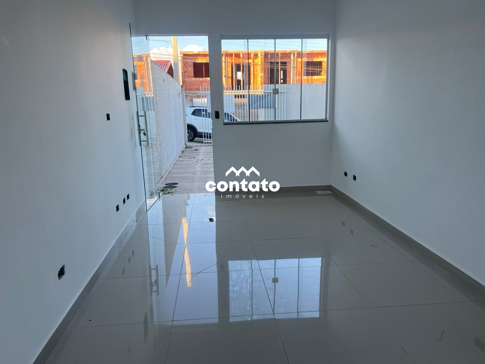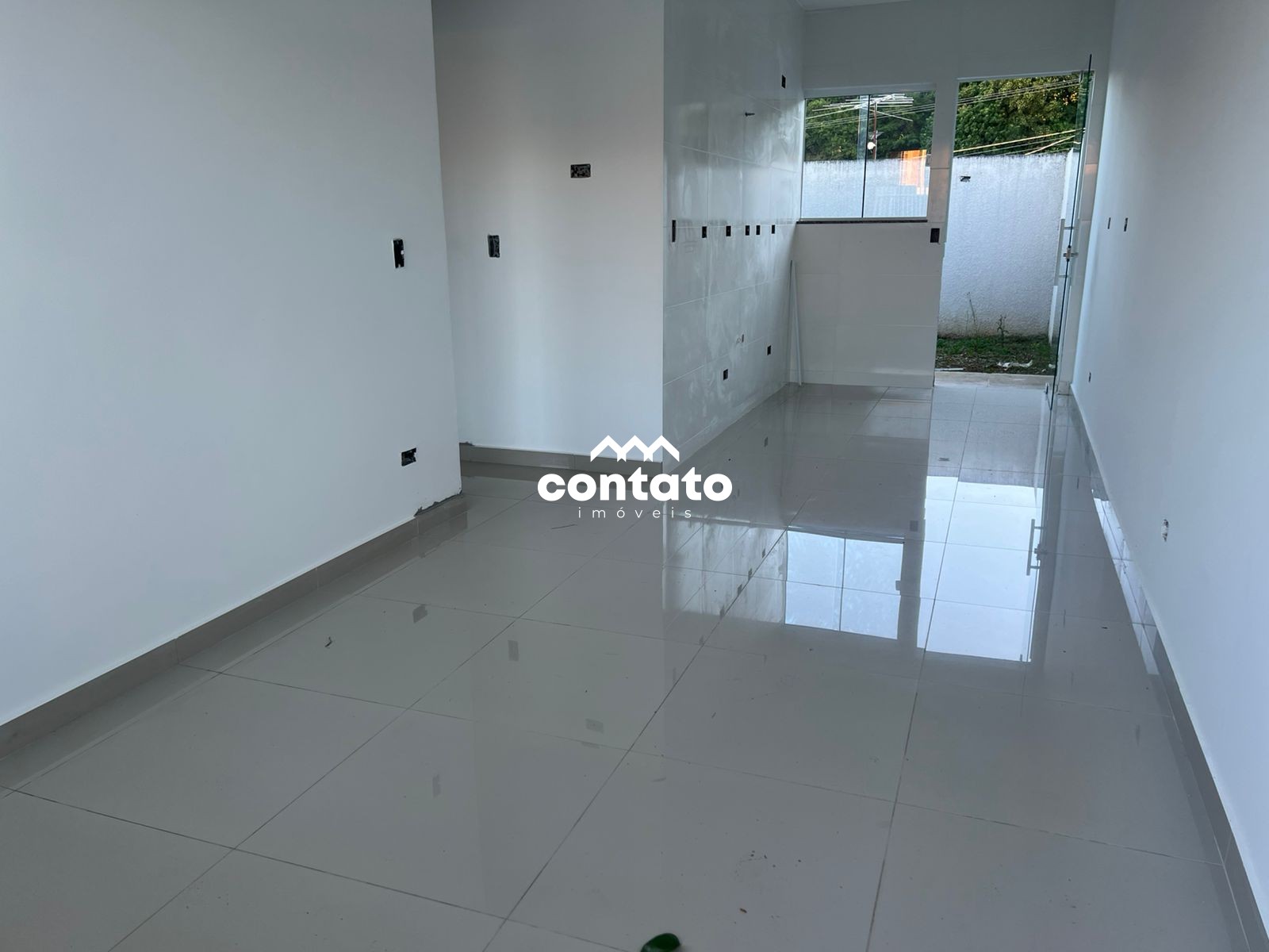 Com sala com piso em porcelanato