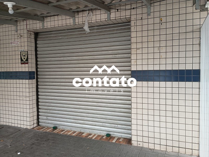 Loja sem divisórias, banheiro, porta de aço, grades na frente com cadeado.